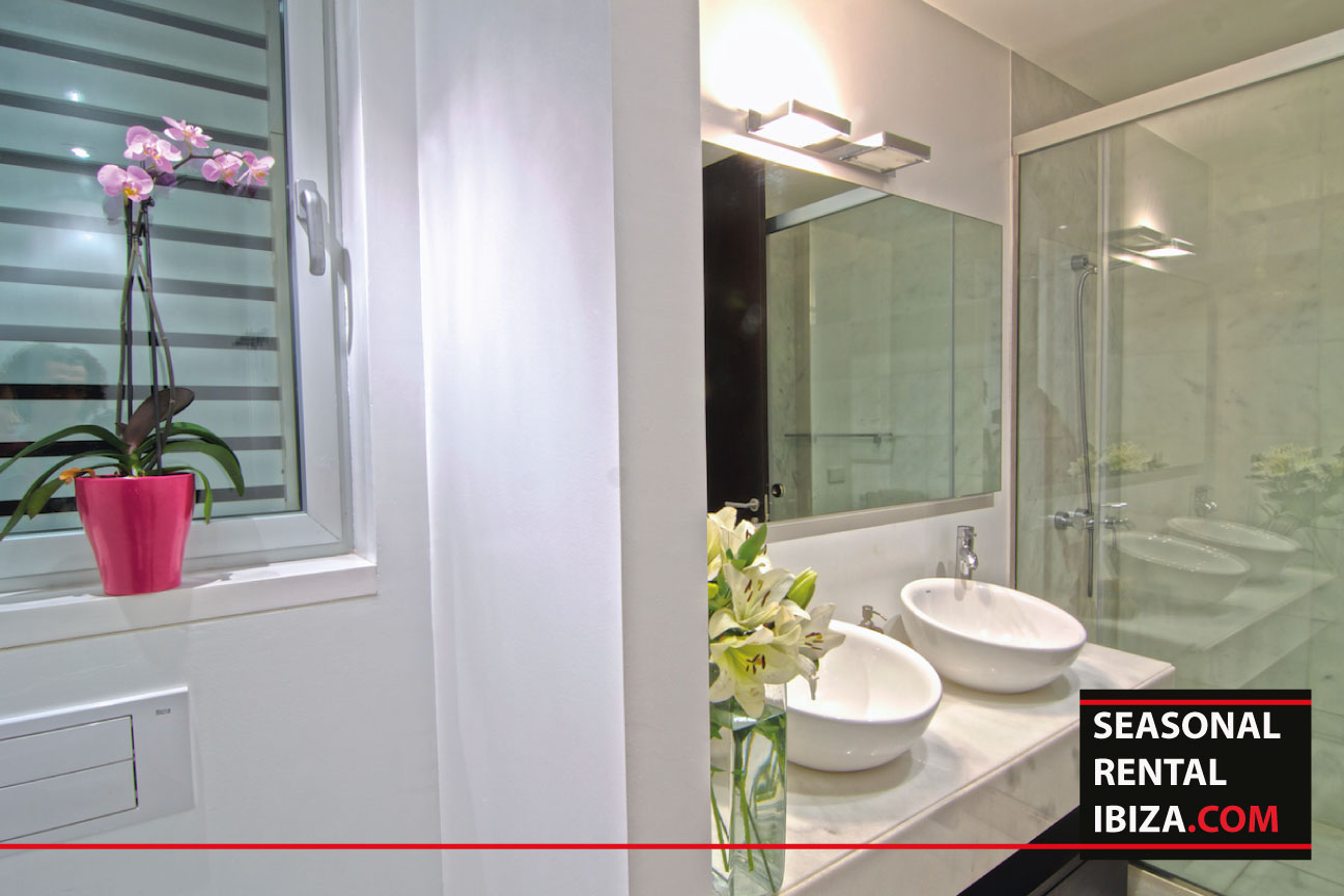 The house is 340m2. The space is split into 4 suite bedrooms, each equipped with their own bathroom, marble floors, built-in wardrobes, air-conditioning and television with canal plus. There is no problem in terms of parking as the grounds have two parking spaces. In addition there is also a 1,600m2 infinity pool: a zone of complete relaxation surrounded by sun loungers from which you can enjoy the magical sunsets. The house is located in Es Pouet residential compound of Talamanca, one of the best areas of Ibiza island, in the centre of Talamanca bay, just 2 kilometers away from the village of Jesús and 4 kilometers away from Ibiza city and the seaport of Ibiza. Furthermore; the house has 24hour security, an alarm connected to the police, 60 surveillance cameras and 60,000m2 of fenced land, communal costs (600 pm) paid by tenant. The house comes with two underground parking spaces. It is located just 3 metres from the beach and is very close to the promenade. Perfect for a family who loves proximity to Ibiza, who wants a luxury, modern and design property in a safe gated community!