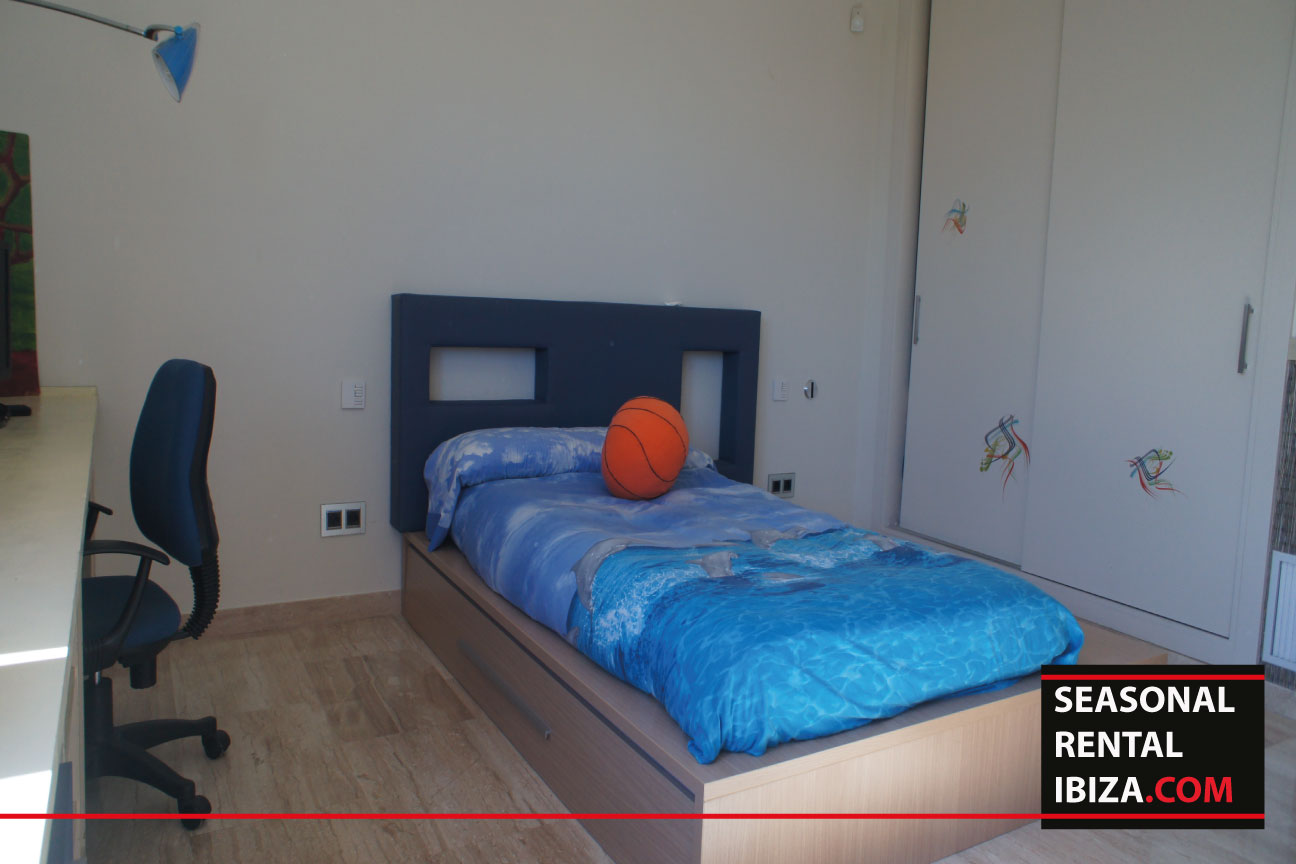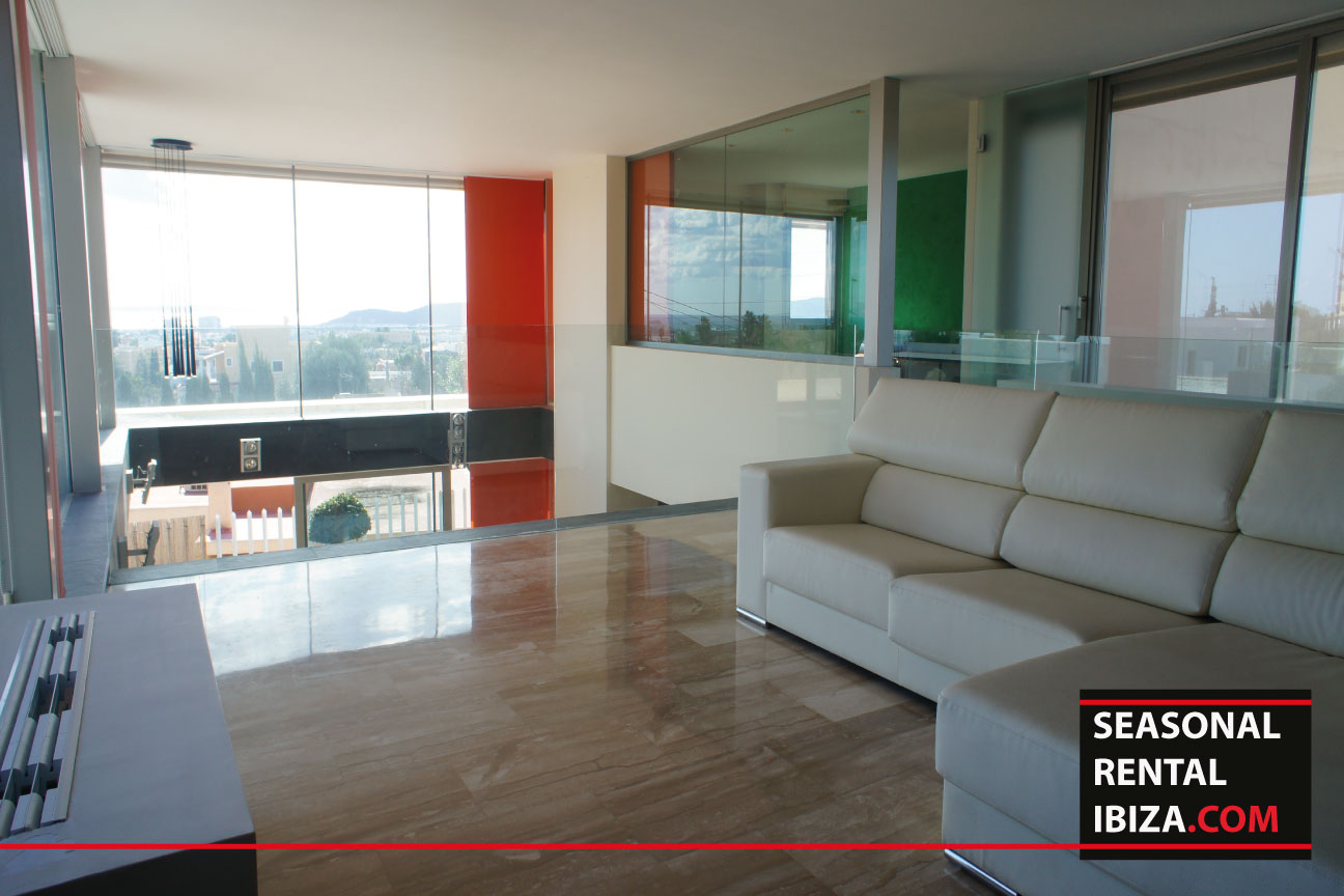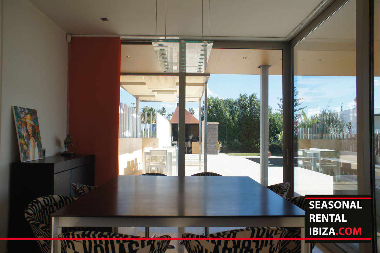 SANT JORDI-SEASON RENT (5 months may-oct). Luxury, bright and modern villa with pool in Sant Jordi. The villa has a touristic license. Located close to Ibiza town, playa den Bossa and the airport. On the main level you will find a spacious living room with high ceiling, modern furniture, domotica, B&O soundsystem, a state of the art kitchen and three bedrooms and two bathrooms. On the top floor you will find the large master bedrooms with bathroom (jacuzzi) from where the views of town and the sea are best. The pool and pool area are beautiful and practical with BBQ, outside shower, bathroom and close to the kitchen. Although the house is in a neighborhood the garden is very private. Furthermore: payment in parts possible but all before 1st of june, alarm, large garage downstairs for 4/5 cars, garden pool maintenance included, AC through conduct. High sublet potential!